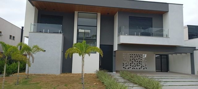 Sobrado com (560) m2 de terreno, (500) m2 de área construída, sala ampla para três ambientes, área gourmet fechada em vidro, cozinha americana, (4) suítes, sendo (1) máster, (3) com sacadas, sala TV, WC social, lavabo, (4) vagas, piscina, paisagismo, vista linda definitiva.