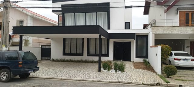 Sobrado com (360) m2 de terreno, (365) m2 de área construída, sala ampla com pé direito duplo, sala de jantar, cozinha com armários, área gourmet, sala de tv, lavabo, () suítes, escritório, (2) vagas de garagem. Condomínio com lazer completo, quadra de tênis, campo de futebol, quadra poliesportiva e muito mais. Ao lado do shopping Colinas, venha conhecer, agende sua visita.