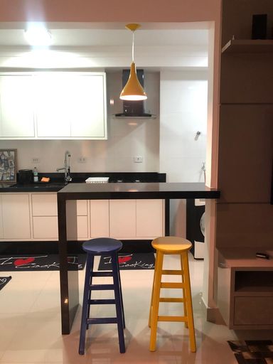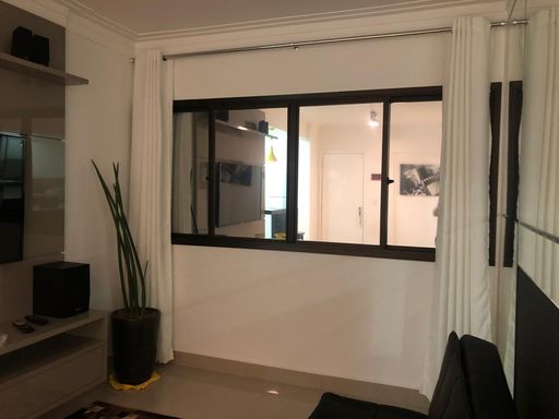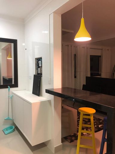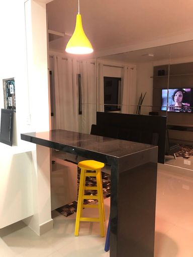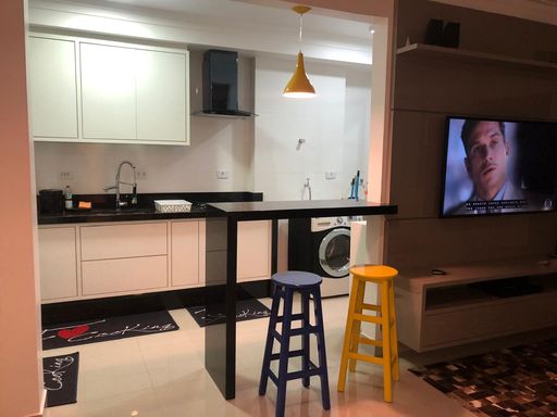 Lindo apto todo mobiliado, Sala para dois ambientes, cozinha conceito aberto com planejados, (1) dormitório, (1) WC, (1) vaga.