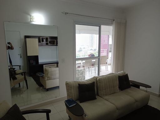 Lindo apto (MOBILIADO) para locação, Sala ampla para dois ambientes, varanda gourmet fechada com vidros voltada para a praça, sol da manhã, (2) suítes, cozinha e área de serviço com planejados e eletrodomésticos, (1) vaga, lazer completo.