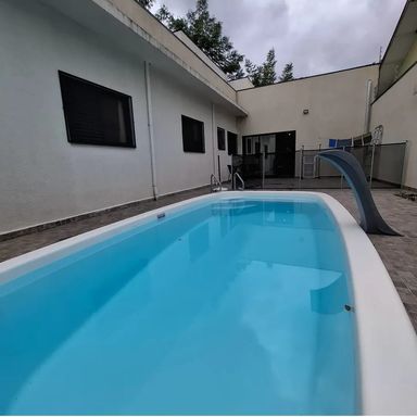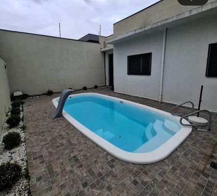 Linda casa com (250) m2 de terreno, (178) m2 de área construída, sala ampla com pé direito duplo, sala de jantar, cozinha com planejados, (3) dormitórios, sendo (1) suíte, wc social, área gourmet, piscina, quintal.