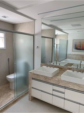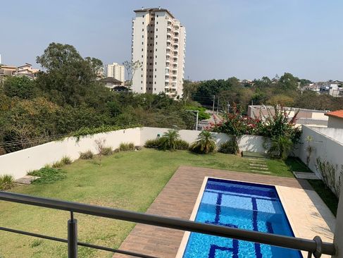 Lindo Sobrado em condomínio com quatro salas ( estar, sala de TV, jantar e sala aconchegante com lareira),quatro suítes, escritório, sete vagas de garagem, vista panorâmica, área gourmet, piscina , jardim e amplo quintal. Armários nos dormitórios, banheiro, closet, área gourmet e demais dependências. Ar condicionado.