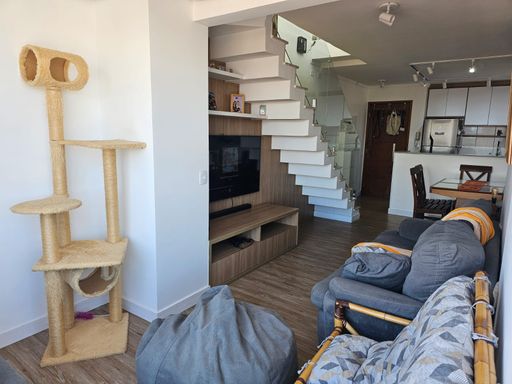 Linda cobertura duplex, com (120) m2, (2) salas, cozinha conceito aberto com planejados, área de serviço, (3) dormitórios, sendo (1) suíte, (1) wc social, (2) vagas, com planejados.