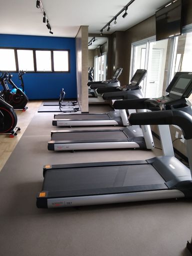Prédio com piscina, churrasqueira, hobbybox, academia, salão de festas, coworking.
