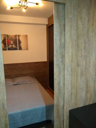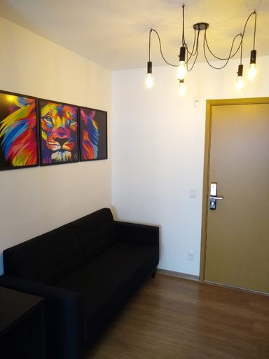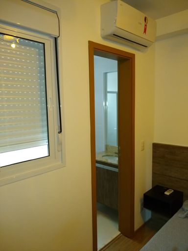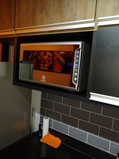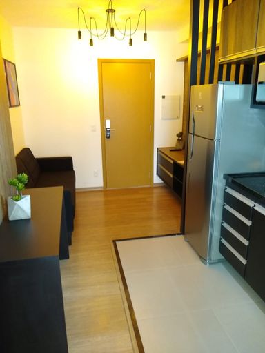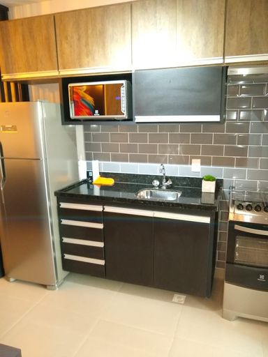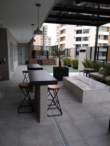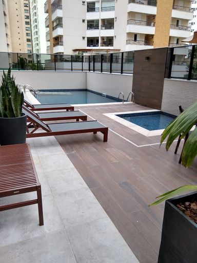 Flat (mobiliado) para locação no Jd. Aquárius, sala, cozinha equipada com eletrodomésticos, varanda grande, (1) suíte com armário, lavanderia, (1) wc com blindex, gabinete, ar condicionado, planejados, geladeira, fogão, micro-ondas, exaustor, sofá, (2) tvs, cama, armário no dormitório, (1) vaga , coberta, fechadura eletrônica.